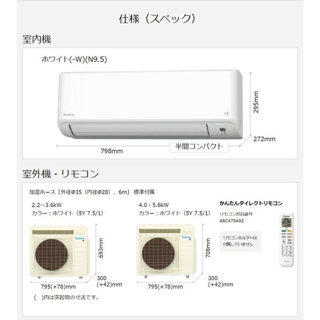 | 室内機サイズ | 幅798x高さ295x奥行272mm | 室外機サイズ | 幅795(+78)x高さ708x奥行300(+42)mm ()内は突起物の寸法です。 |