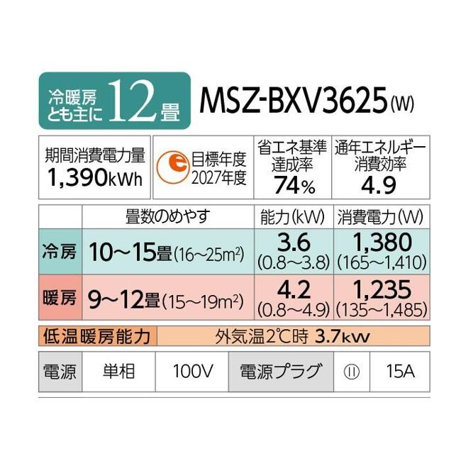 | 低温暖房能力 | 3.7 kW | 暖房消費電力 | 1235W |