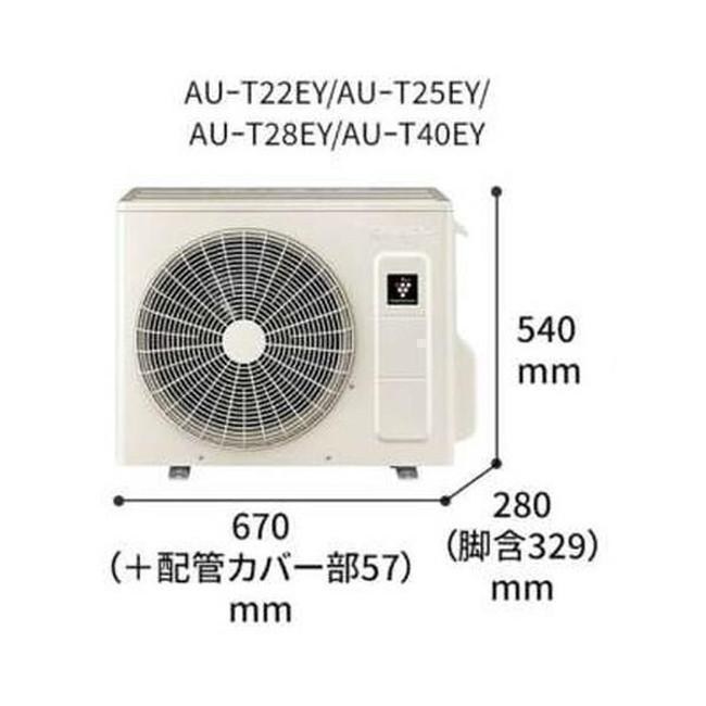| 室内機サイズ | 幅798x高さ249x奥行301mm | 室外機サイズ | 幅670(+配管カバー部57)x高さ540x奥行280(脚含329)mm |