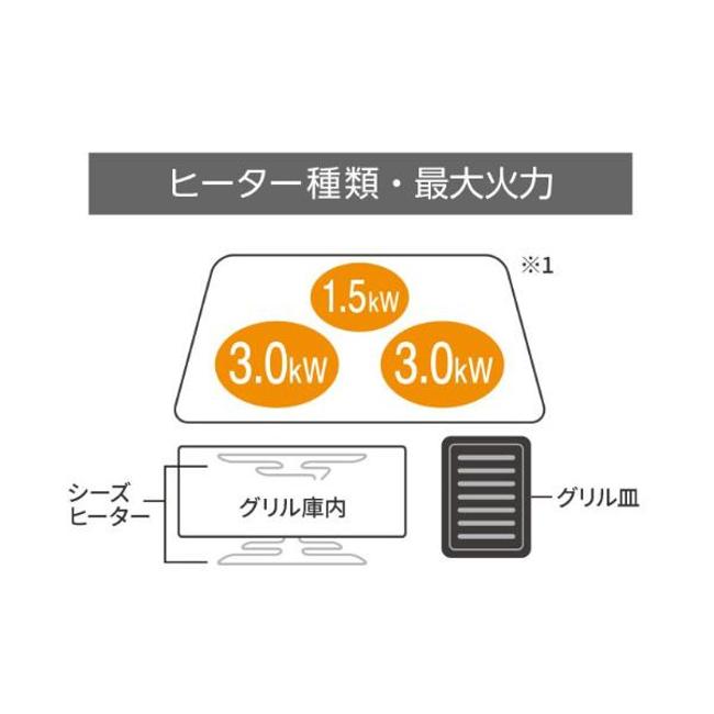 | 火力調整 | 左右IH:10段階 後ろIH:7段階 グリル(手動):3段階 | クイックラジエントヒーター | |