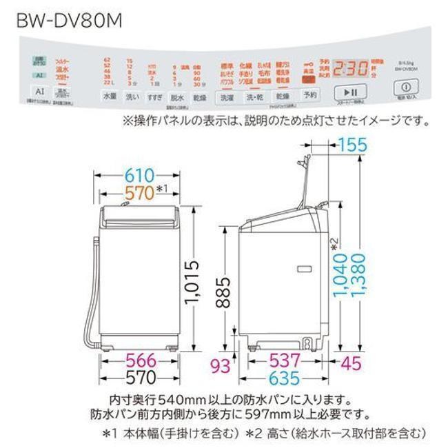| 本体幅 | 57 cm | 幅x高さx奥行き | 幅(本体幅)×高さ×奥行:610(570)×1040×635(外形寸法は給水ホース取付部・排水ホースを含みます。本体幅の寸法は手掛けを含みません。) mm |