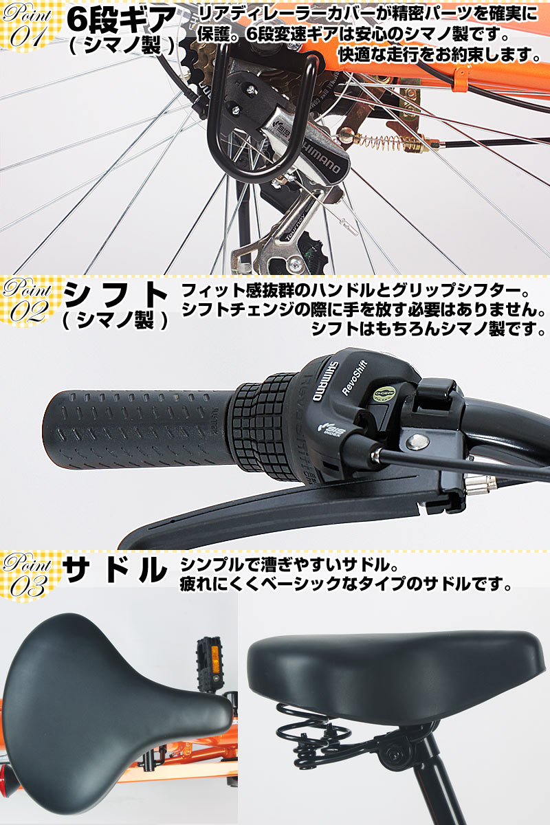 タイプ:折りたたみ自転車 タイヤサイズ:26インチ シフト数:6段変速 フレーム素材:スチール 重量:18kg